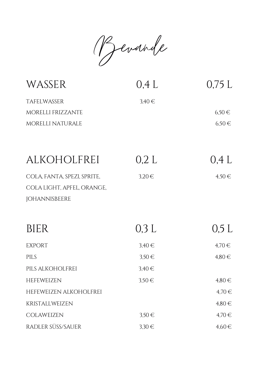 | Paulaner Hefe | 4,20€ | 4,70€ |