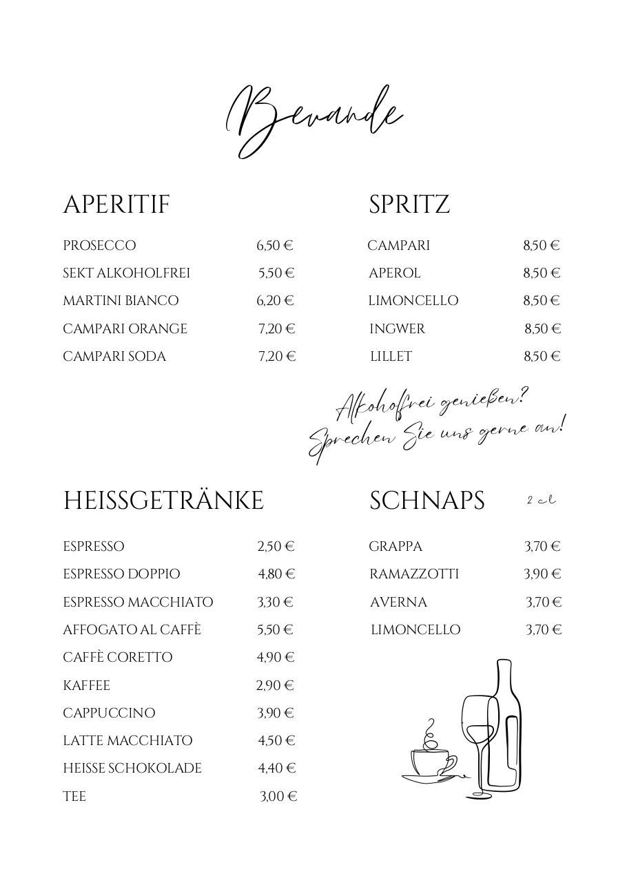 | Cola, Fanta, Sprite, Spezi, Saftschorle, Cola Light | 0,2l | 3,20€ |